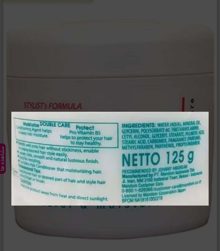 کرم حالت دهنده موی جانی اندرین Johnny Andrean Styling Cream حاوی پرو ویتامین B5 بوده و بدون ایجاد چسبندگی به موهای شما نرمی و درخشندگی طبیعی می دهد. کرم موی جانی اندرین همچنین مرطوب کننده و محافظت کننده سلامتی مو می باشد.