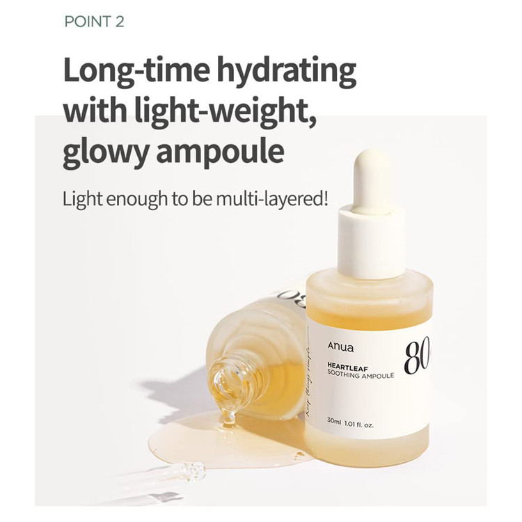 آمپول تسکین دهنده و مرطوب کننده آنوا حاوی عصاره هوتونیا کوردتا Anua Heartleaf 80% Moisture Soothing Ampoule 30ml