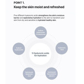 - حاوی ۵ نوع هیالورونیک اسید برای آبرسانی عمقی، چند لایه و حفظ رطوبت پوست