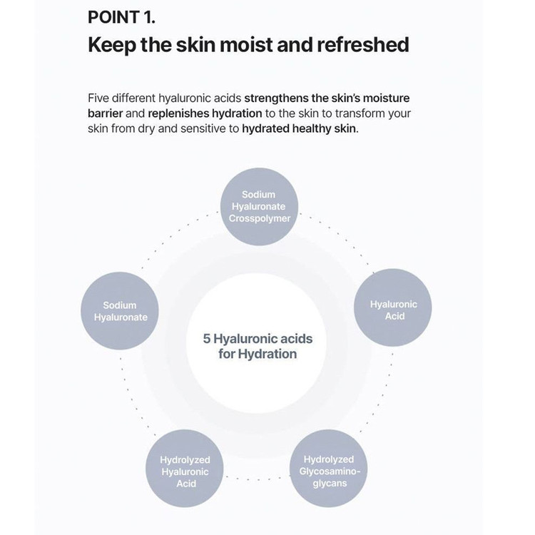 فرمول این محصول حاوی ترکیبی از ۵ نوع هیالورونیک اسید است که با نفوذ در لایه های مختلف پوست، رطوبت از دست رفته را جبران کرده و سد رطوبتی پوست را تقویت میکند. علاوه بر این، وجود عصاره چای سبز، روغن جوجوبا و روغن آفتابگردان باعث تسکین، نرمی و تغذیه عمیق پوست پس از پاکسازی میشود.