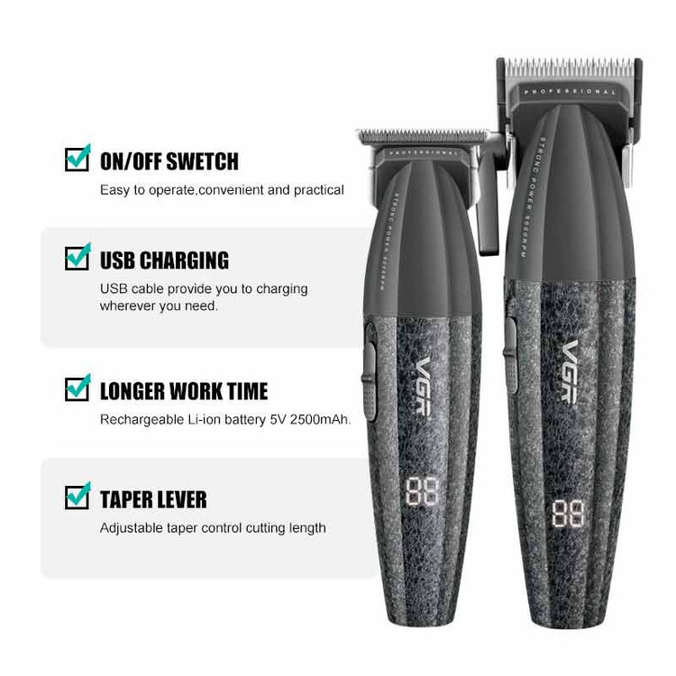 - ست ماشین اصلاح وی جی آر مدل VGR V-640 یکی از جدیدترین محصولات کمپانی بزرگ VGR است. این ست متشکل از دو عدد ماشین اصلاح خط زن و حجم زن که هم برای استفاده شخصی و حرفهای گزینهای بسیار مناسب و مقرون به صرفه میباشد. در ساخت این ست دو قلو سعی شده از بروزترین فناوری های روز دنیا بهرهگیری شده است.