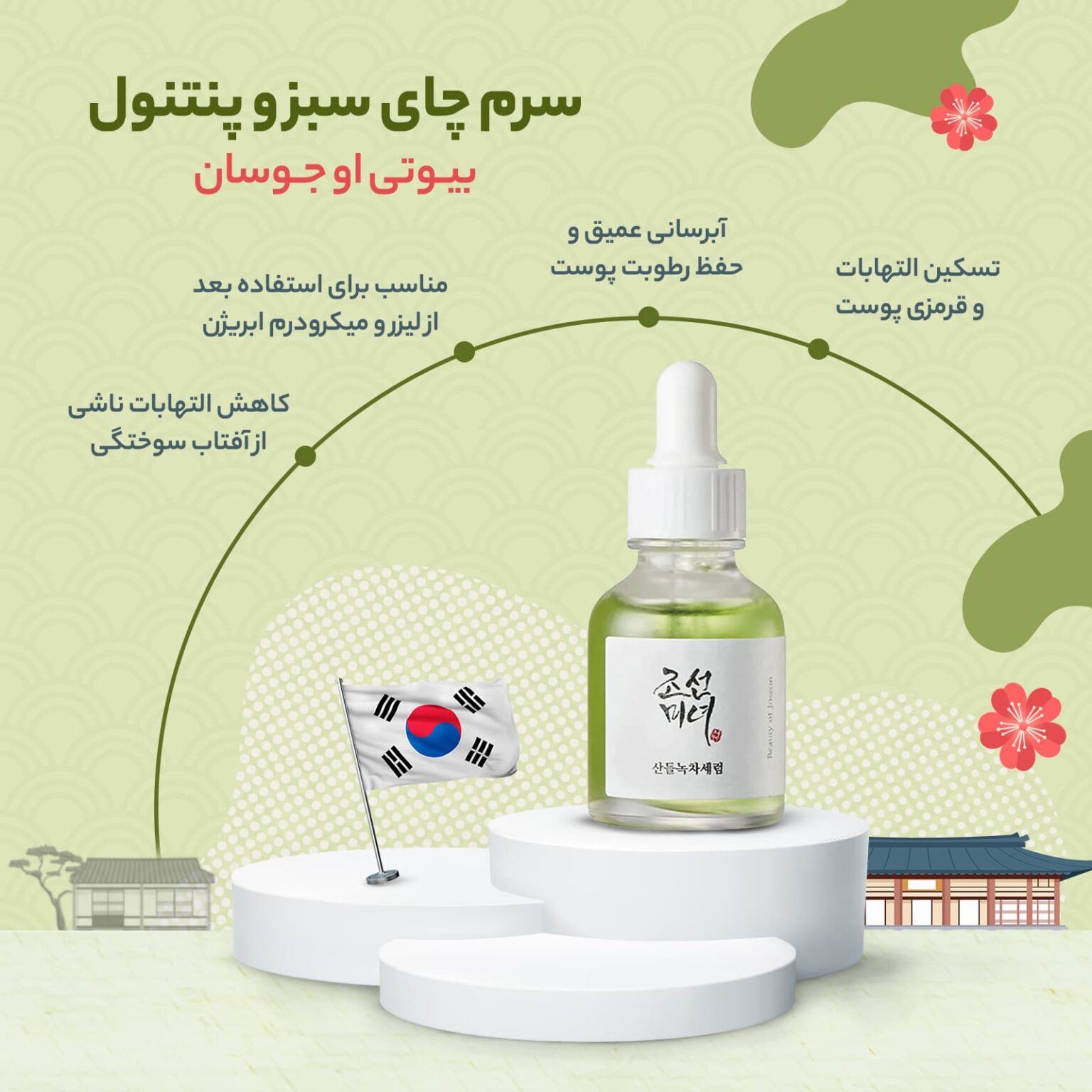 سرم چای سبز و پانتنول 30میل اصل کره