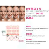 - فرمول حلال و وگان همراه با هیالورونیک ، ویتامین C، الاستین و پروبیوتیک در هر ساشه