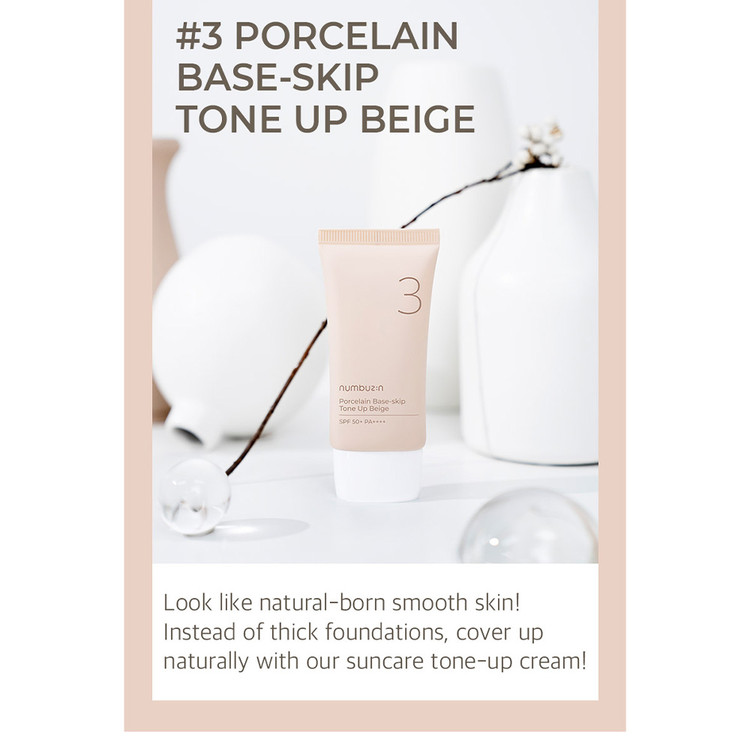 ضد آفتاب تون آپ بژ شماره 3 نامبوزین Numbuzin مدل porcelain base skip نامبوزین Numbuzin