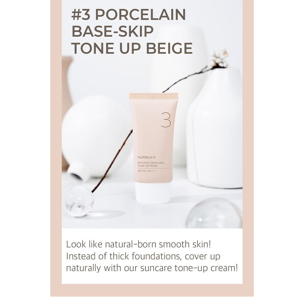 ضد آفتاب تون آپ بژ شماره 3 نامبوزین Numbuzin مدل porcelain base skip نامبوزین Numbuzin