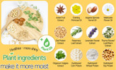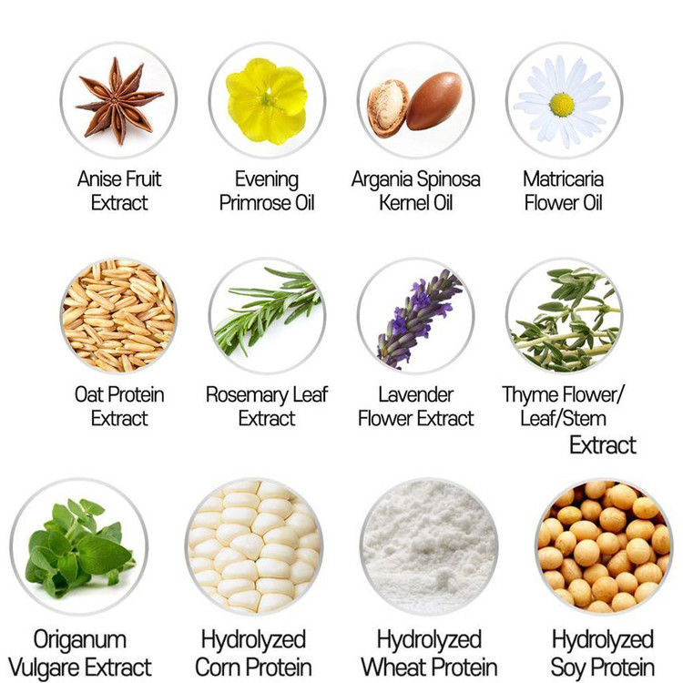 - دارای ترکیبات گیاهی آرام بخش و محافظ از جمله عصاره اسطوخودوس، رزماری، آویشن و پونه کوهی که به کاهش خشکی، وز و آسیب های محیطی کمک میکنند.