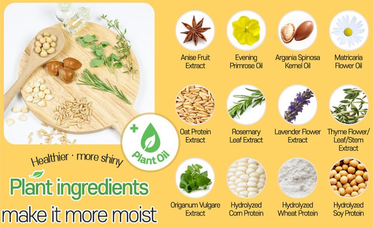 - افزایش نرمی، لطافت و انعطاف پذیری تارهای مو به کمک کلاژن هیدرولیز شده، کراتین هیدرولیز شده و پروتئین های ساختاری که به بهبود بافت مو کمک میکنند.