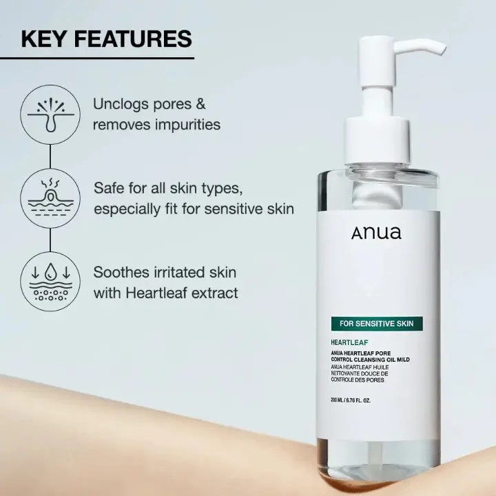 روغن پاک کننده ی آرایش و کنترل منافذ آنوا مخصوص پوست حساس Anua Heartleaf Pore Control Cleansing Oil Mild