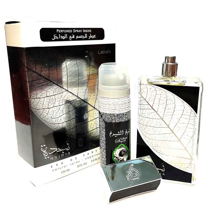 عطر ادکلن نجدیه محصول شرکت لطافه امارات این ادکلن که هم زنانه و مردانه است دارای رایحه دلنشین و همه پسند است که مناسب همه افراد می باشد نجدیه یکی از گزینه های مناسب برای هدیه دادن است عطر به کار رفته در ادکلن نجدیه لطافه دارای روایح خنک معطر و کمی مرکباتی است . این ادکلن عربی مشابه ادکلن اینوکتوس پاکاروبان است .